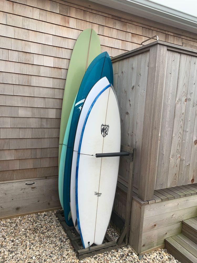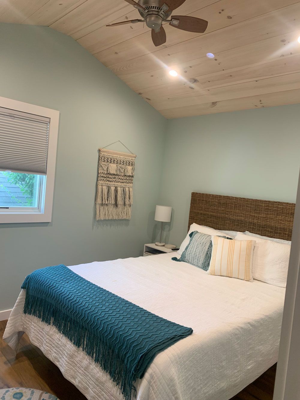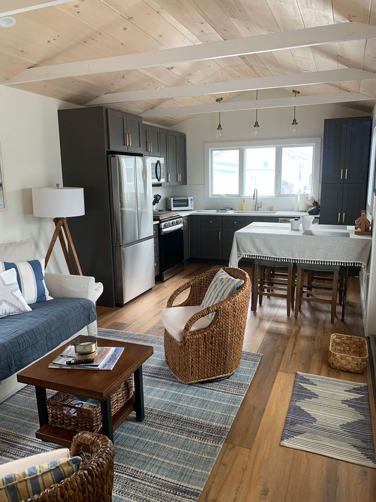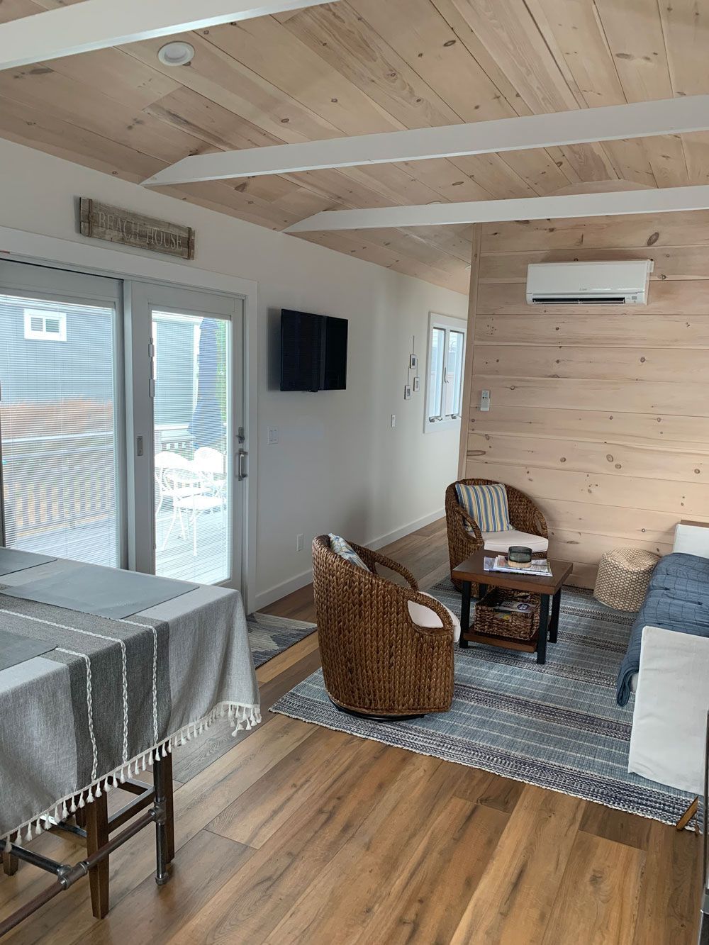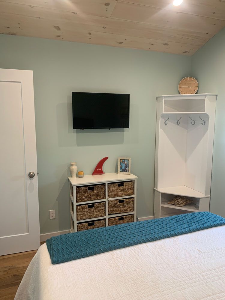 Our little piece of paradise is a pristine 2-bedroom, one-bath trailer with modern beachy décor. Master bedroom has a queen bed and second bedroom has twin bunks. New eat-in kitchen has plenty of storage space and seating for four. Living area leads to deck with dining set, hi-top table and chairs. Yard features an outdoor shower and storage for multiple surfboards.